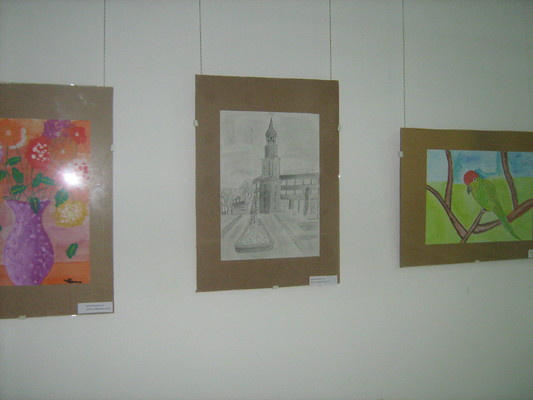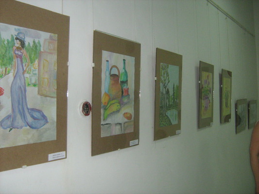 Изложбата съдържа картини от почти всички жанрове на изобразителното изкуство: графики, пейзажи, натюрморти, линогравюри и други. Те са дело на възпитаниците на школата, която съществува повече от 10 години. Днес в школата се обучават 20 деца на възраст от 5 до 17 години. Най-малкият участник в изложбата е Ева Борисова от ЦДГ „Звънче”. Тя представя две свои картини.