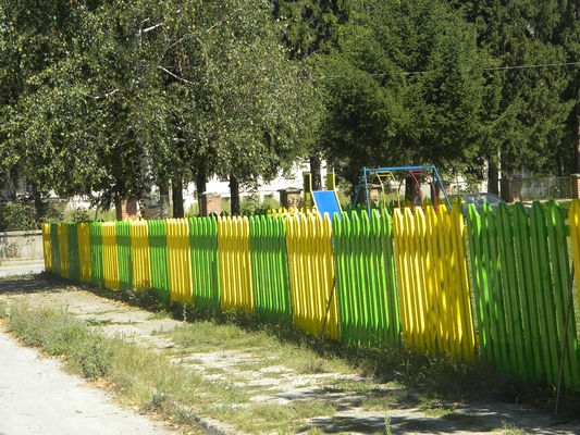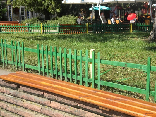 Друга такава площадка са изградили със съдействието на съседите и в градинката до паметника пред входа на „Метални изделия”. Забележителна е обаче оградата около площадката. По-висока е от ниските ограждения в центъра и на други места в града. И е красива.