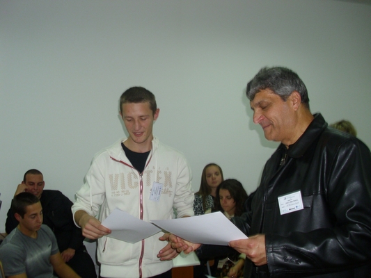 Всички участници приключиха работа около обяд. Иновативните предложения бяха представени от 13.30 часа в мултимедийната зала на учебното заведение. Това стана в присъствието на петчленно жури в състав: Ваня Иванова, зам.-директор на училището, и преподавателите Стефан Дянков, Ваня Петкова, Антоанета Йотова и Евгения Банкова. Те оцениха проектите по следните критерии: иновативност, ефективност, приложимост, обществена полза, представяне на сцена, отговори на въпроси. Максимален брой точки – общо 100, събра разработката “Очила за виртуален туризъм” на отбор PGTM. Второ място зае отбор HELP ME, който представи гривна против тютюнопушене. На трето място бяха класирани проектите: “Къщата на чудесата”, чиято цел е да подпомага хората в нужда; “Училище на 21 век”, чрез който се цели внедряване на нови мултимедийни технологии в учебния процес, и “ДИЕТ” – верига ресторанти за диетични ястия.