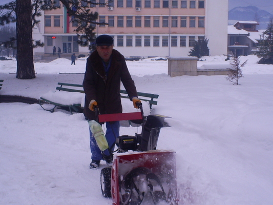 Специалната снегопочистваща машина е закупена от Общината и ще се използва за почистване на тротоарите и на пешеходните зони в централната градска част. Цената й е 1000 лева.
