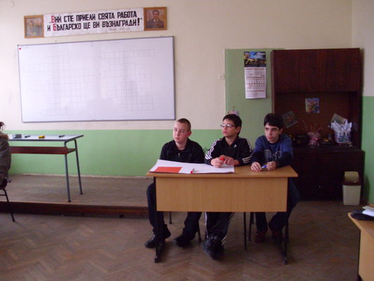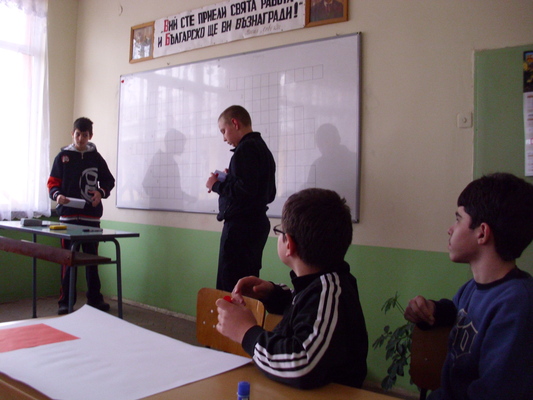 Състезание по английски език се проведе днес в ОУ „Васил Левски” – Ботевград. В надпреварата участваха два представителни отбора – на 6 „а” и 6”б” клас. Те мериха сили в пет кръга. В първия трябваше да решат кръстословица, във втория – да напишат миналата форма на неправилните глаголи, които изтеглиха предварително, в третия – да залепят по 12 листчета с написаните върху тях продукти, които се използват за приготвянето на пица и овчарска салата, в четвърти кръг трябваше да изпишат по едно заглавие от поредицата „Хари Потър”, като подредят правилно буквите от изтегления плик, в петия – да открият думи на Апостола в превод на анлийски език. Работата на отборите следеше жури в състав: Снежана Геновска – преподавател по английски език, Висил Василев - зам.-директор на ОУ „Васил Левски”, и Цецка Доцинска – психолог. На първо място - с 61 точки и по-добро време за изпълнение на задачите, бе класиран отборът на 6”б” клас. Другият отбор постигна резултат от 51 точки и получи специална похвала от психолога за работата си в екип.