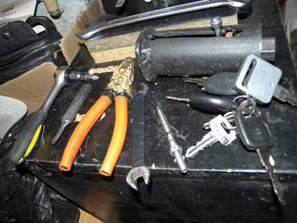 При последвалите следствени действия, от мазе, собственост на 24-годишния мъж, са иззети акумулатор, две черни маски, заготовки за автомобилни ключове, устройство за отключване на автомобили тип „тирбушон", пригодени ленти за отключване на автомобили, заготовка за арбалет, метална стълба за спускане от високи разстояния.