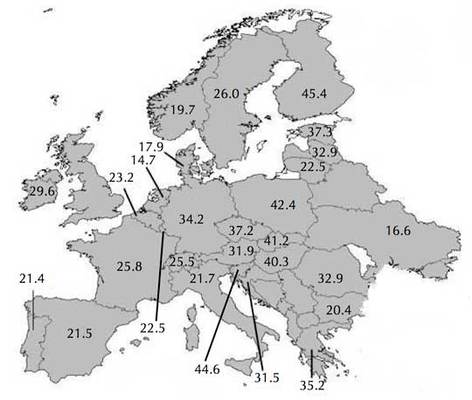 От XiTi предоставят, индивидуални статистики за 32 страни. Финландия в момента има най-голям процент - 45.4, последвана от Словения - 44.6% и Полша - 42.4%.
