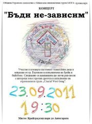Днес, 23.09, в 19:30 ч. Концерт "Бъди не-зависим" на лятната сцена в Парка (над Автогарата). Много нови парчета, различни стилове, много готини изпълнители, страхотно забавление!