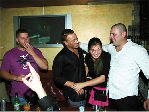 Актьорът изглеждал супердоволен, снимал се с клиентите, със сервитьорките, а също и с дамите, които работели в сградата. Веселбата била в пълен разгар, въпреки че приятелчетата на Ван Дам не говорели бъкел английски.