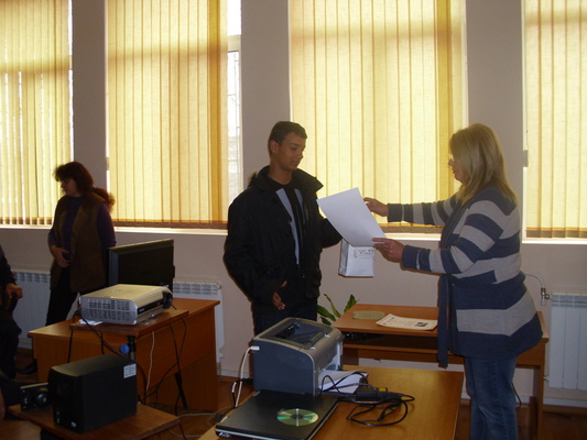 Авторите на разработките – Георги Пенков, Преслав Асенов, 9 „б” клас и 9 „в” клас, получиха специални награди /топки, ракети за тенис на маса, мини шах, мини табли и други/ от директора на учебното заведение Соня Малинчева. Тя поздрави и фелдшер Ели Табакова за отличната организация на училищните прояви, посветени на днешния ден.