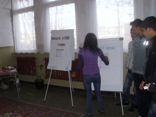 В състезанието за проверка на знанията как трябва да се предпазваме от СПИН участваха три отбора. Те бяха оценявани по два показателя – бързина и правилни отговори. След това се проведе викторина, в която участваха деветокласниците.