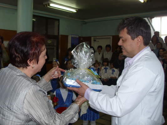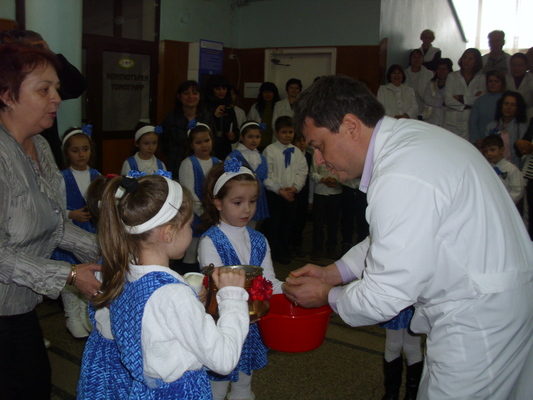 По традиция Денят на родилната помощ – Бабинден, бе отбелязан тържествено в местната болница. Тази година поздрав към лекарите и акушерите от Родилното отделение поднесе ЦДГ „Синчец”. Малчуганите от детското заведение представиха специална програма, посветена на днешния празник. Нейното послание бе: „Докато свят светува, празникът на родилната помощ ще се празнува!”. Поздрав към екипа на Родилното отделение отправи и Таня Цанова, директор на ЦДГ „Синчец”. Последва изпълнение на обичая „измиване на ръце”. Както си му е редът, малчуганите поляха на завеждащ АГО д-р Георги Шуманов да си измие ръцете. От своя страна той покани Елена Лалова, като акушер с най-дългогодишен стаж, да участва в ритуала.