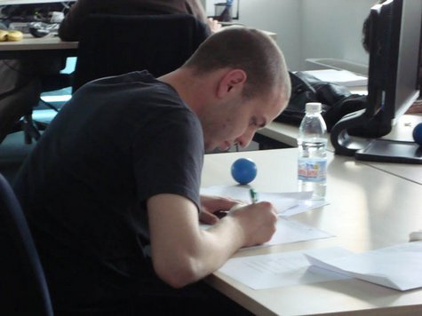 За по-голямо предизвикателство, участниците в ИТ олимпиадата решават задачите единствено с химикал и лист хартия (снимка: it-olympics.bg)