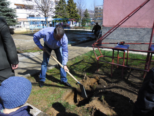 Първото дръвче засади Емил Димитров, който не само си довърши работата до край, но го направи с вещина и разбиране. Определени способности при засаждането показа и заместник-кметът Росица Христова. В засаждането се включиха и служители на Горското стопанство. Децата „асистираха”, като поливаха с детските си лейки новозасадените дръвчета и храсти.