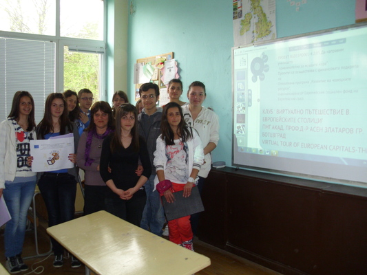 Клуб „Виртуално пътешествие в европейските столици” е създаден по проект „Успех” по схема „Да направим училището привлекателна територия за младите хора” на ОП „Развитие на човешките ресурси”. Дейността на клуба се осъществява под ръководството на учителката Диана Ганева. Пред наш репортер тя сподели, че клубът работи в областта на комуникативните умения на аглийски език, а целите на урока са: обогатяване на знанията на учениците за живота, традициите и културата на другите държави; развитие на езиковите компетентности и умението за работа в екип; използване на интерактивни методи за повишаване на интереса към чуждоезиковото обучение; практическо приложение на придобитите знания.