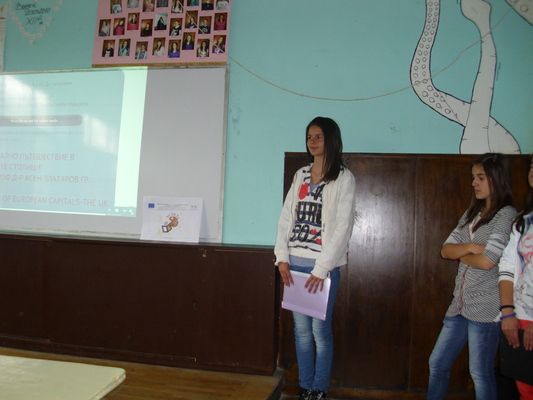 Обобщаващ урок на тема „Виртуално пътешествие в Обединено Кралство Великобритания, Северна Ирландия и Ирландия” изнесоха учениците от клуб „Виртуално пътешествие в европейските столици” при ПМГ „Акад.проф.д-р Асен Златаров”, Ботевград. Те разказаха за най-известните исторически и културни забележителности и традиции в градовете Лондон, Единбург, Кардиф, Белфаст и Дъблин. Информацията бе поднесена и на английски, и на български език. Тя бе придружена с представяне на фотоси и видео.