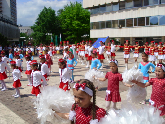 Празничната програма завърши на площад „Освобождение”. Точна в 12 часа Младежкият духов оркестър изпълни химна на Обединена Европа – „Ода на радостта”, с което се включи в Националния празничен акт по повод 5 години от присъединяването на България към ЕС. В него участие взеха и мажоретните състави. Проявата бе заснета със сателит.