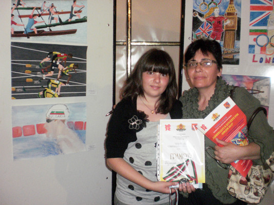 В читалище „Доростол”, Силистра, се състоя награждаването на победилите в националния конкурс „Олимпиадата в детските очи – Лондон 2012 г.”. Както вече сме информирали, сред победителите е Гергана Лъчезарова Георгиева, възпитаничка на Школата по изобразително изкуство в Ботевград. Нейната рисунка е класирана на второ място във възрастовата група от 11 до 14 години. Тя донесе на Гергана златен медал за участие, сребърен медал за второто място, плакет, диск и книгата „За вас, деца невинни, от 5 до 105 години”, и други подаръци. Рисунките на всички победители са отпечатани в дипляни, които ще бъде изпратена в Българския информационен център в Лондон. Към тях ще има и дискове с изложбата на наградените творби. Това съобщи ръководителят на Школата по изобразително изкуство Димитринка Томова.