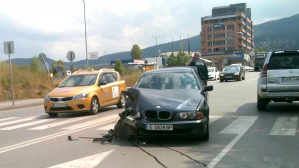 Лек автомобил "БМВ" се потроши в катастрофа днес на Симеоновско шосе, в близост до пешеходна пътека.