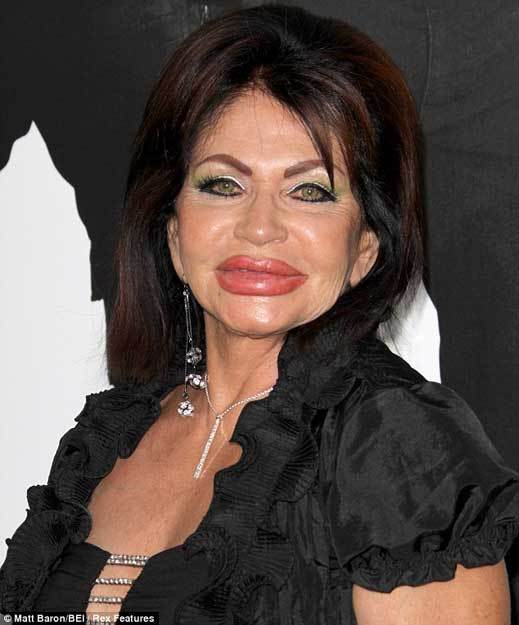 Вече 90-годишната астроложка показа гигантски устни и безформено, но опънато лице.