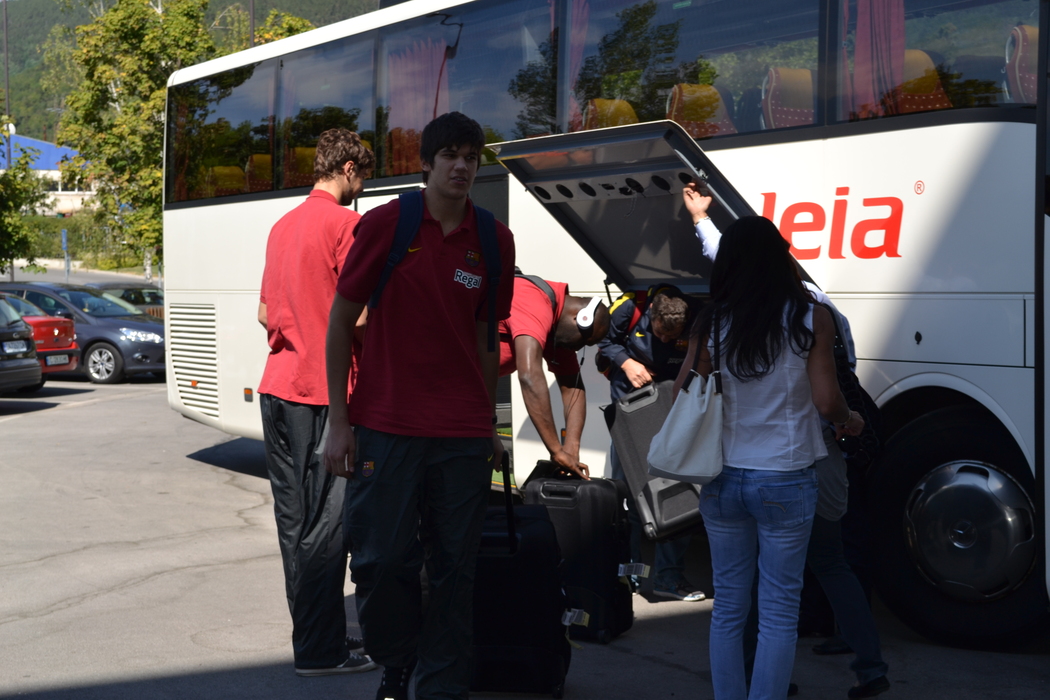 Европейският баскетболен гранд Барселона пристигна днес в Правец. Автобусът с играчите и целия щаб на тима паркира пред централния вход на хотел РИУ Правец Резорт в два и половина следобед. За тима е отделен целият пети етаж, освободен по-рано през деня от футболистите на националния отбор на България.