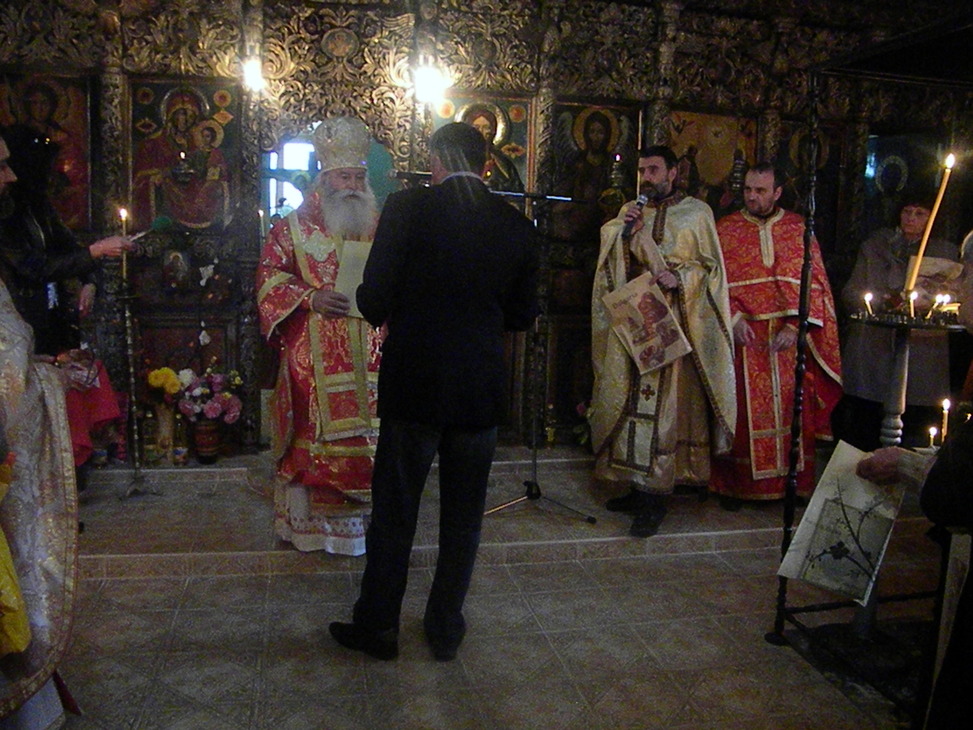 В съслужие с местни свещеници той отслужи Света литургия. След като честити празника и годишнината на храма, той награди с грамоти и подаръци, спомогнали за благолепието на храма: председателят на Църковното настоятелство Отец Огнян, игуменът на манастира “Св. Троица” отец Емил Якимов.