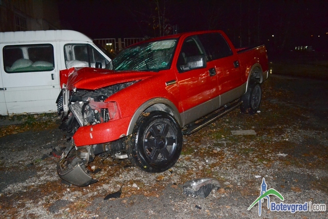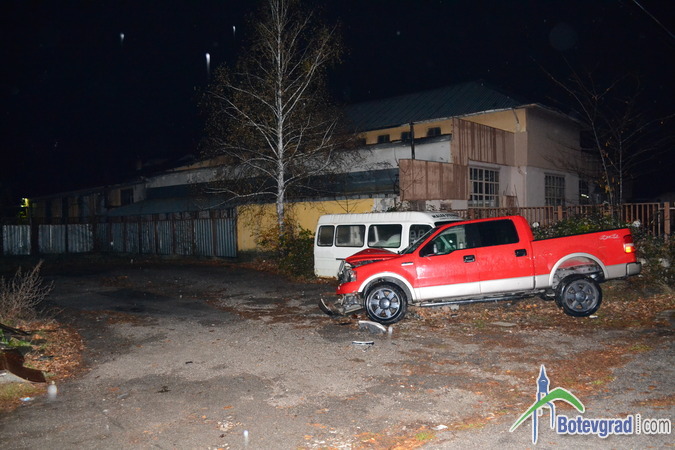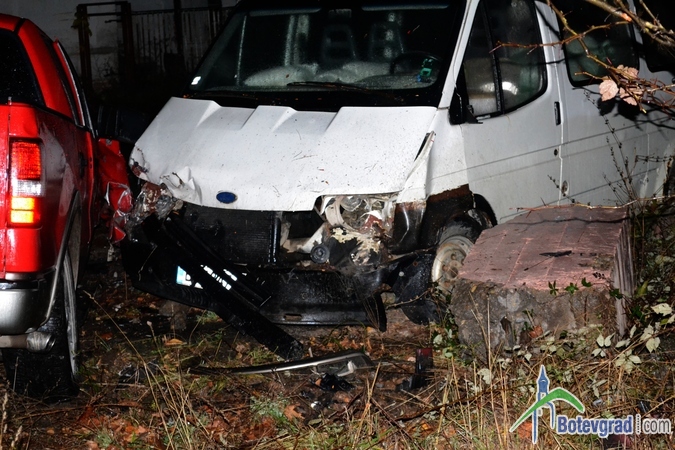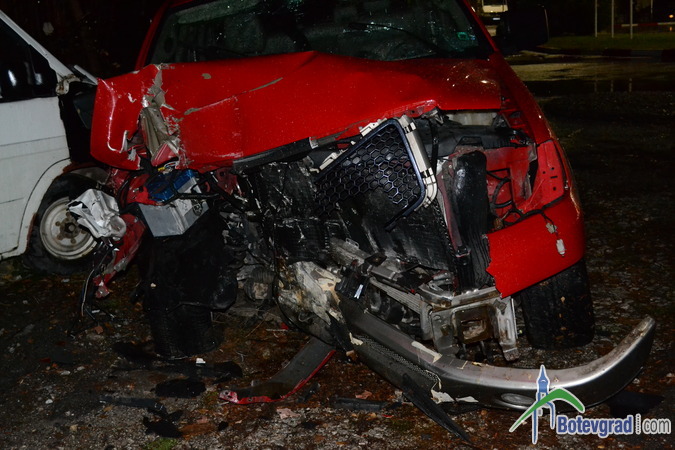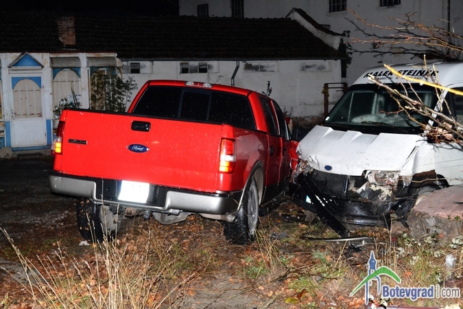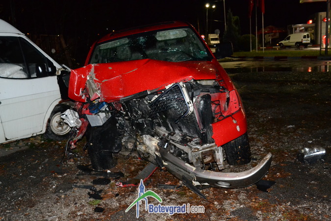 Преди малко стана тежка катастрофа на завоя при бензиностнацията на „Румойл” в Ботевград. Джип „форд” с ловешка регистрация се движел по улица „Витоша” покрай гимназията. На кръстовището при бензиностанцията шофьорът не могъл да вземе завоя е се ударил в бетонен стълб на оградата на бившата фирма „Родина”. След това джипът буквално отхвръкнал и последвал нов удар – в товарен микробус.