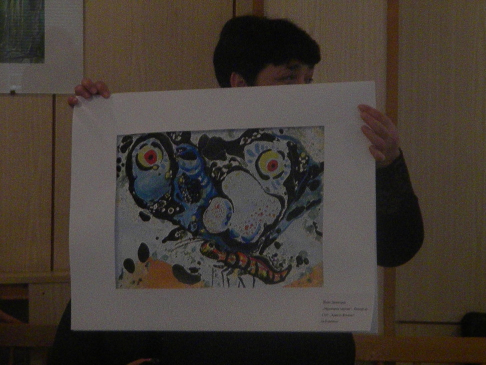 Обект на нововъведенията беше и обширната презентация и споделеният опит на някои от учителите. Учителят по изобразително изкуство Николай Георгиев представи чрез презентацията как се прави рисунка по метода “мраморен лист”, като картината чиято изработка беше показана от екрана подариха на зам.-министър Дамянова.