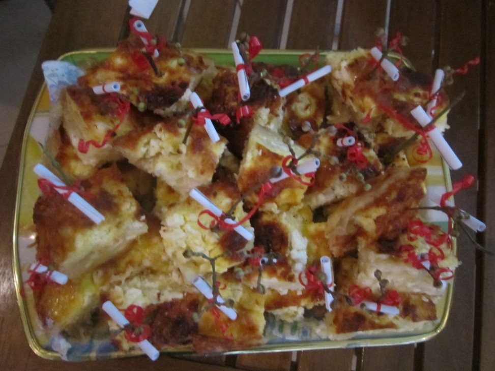 Имаше и вкусна баница с късмети, направена от Мирела и Надя от 11 кл.