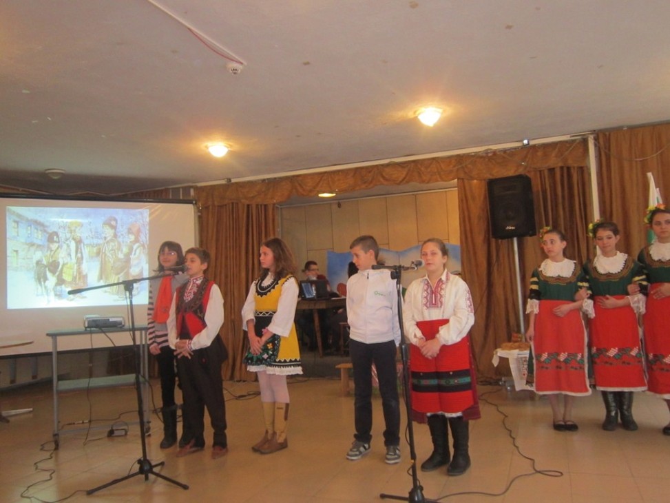 Учениците от петите класове представиха най-големия зимен празник Коледа чрез стихове и разкази. Учениците от шестите класове огласиха залата с народни песни. Сиси и Мими Върбанови - 10 кл. изпълниха чудесна акробатична композиция, на фона на видео клип на песента „Излел е Дельо хайдутин“, направен от Мариян Дочев - 12 кл. Сърцата на всички се разиграха, когато Пламен Пушкаров-11 кл. и Поля Калинова- 12 кл.,пресъздадоха Елинпелиновото надиграване с българска ръценица.
