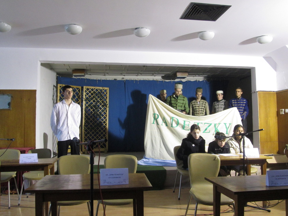Видяхме и умелото смесване на различни „жанрове” – 5 състезателни отбора от училищата на Общината, без състезание със жури и оценки; рецитиране на ботеви стихове от участници в „отборите”; драматизация, пресъздаваща завземането на кораба „Радецки” и слизането на четата на българския бряг, пресъздадена от ученици от ХІ-б и ХІ-в класове на СОУ „Христо Ясенов”; етрополската народна песен „Стари дядо”, изпълнена от народната певица Диляна Гоцева. Авторови стихотворения от участници в литературния кръжок "Христо Ясенов" про НЧ "Тодор Пеев-1871" с ръководител Евгения Христова.