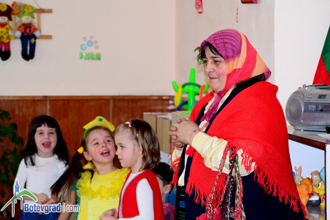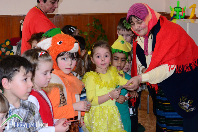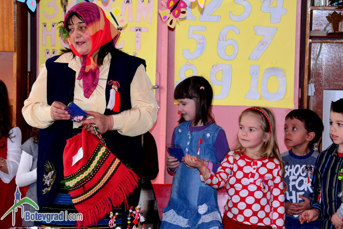 Малчуганите благодариха на Баба Марта с песни и стихове, написани за нея, за пролетта, за цветята - предвестниците на сезона. От своя страна дългоочакваната и обичана гостенка им раздаде мартеници и им пожела да са здрави, радостни, енергични, умни и послушни.