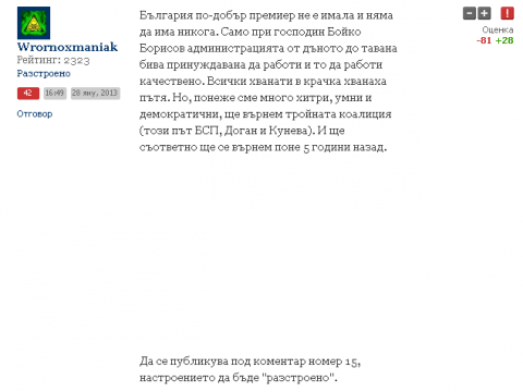 Той е публикуван под номер 42 в 16:49 часа. Предизвикал е 81 отрицателни и 29 положителни оценки.