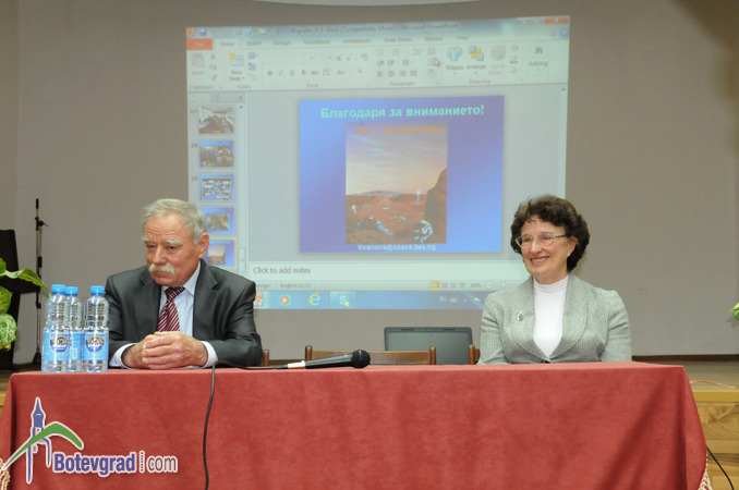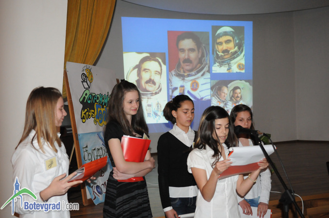 Първият български космонавт генерал-лейтенант Георги Иванов, придружаван от съпругата си и проф.Таня Иванова от Института за космически изследвания към БАН, се срещна с ученици и учители от ОУ „Н.Й.Вапцаров”. Срещата се състоя в малкия салон на читалище „Христо Ботев”. Ивона Кулинска прочете есе на тема „Космосът и ние”. Последва компютърна презентация, подготвена от клуб „Галилей”, сформиран по проект „Успех” в учебното заведение. Чрез нея учениците проследиха историята на космонавтиката и българския принос в космическите изследвания. За подготовката си те получиха поздравления от гостите. От своя страна проф.Иванова разказа подробности за участието на българските учени в овладяване на Космоса. Тя сподели с децата за осъществяването на различни проекти, сред които създаване на сондов прибор П1 за директно измерване на параметрите на йоносферната плазма, за първата космическа оранжерия с компютърно управление и други.