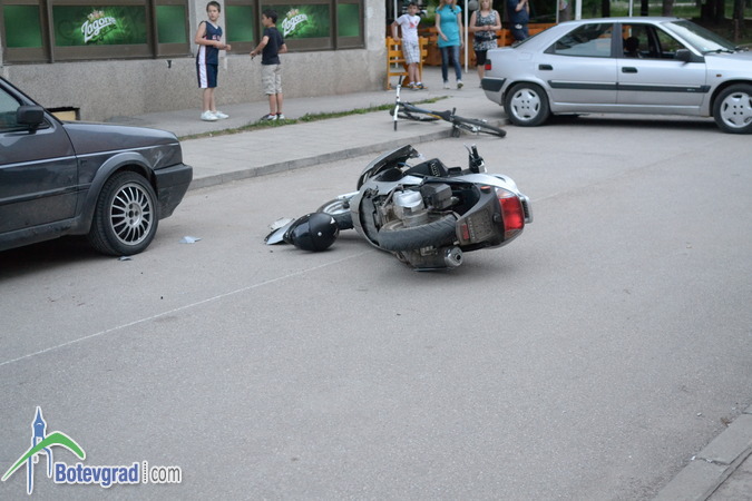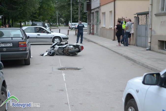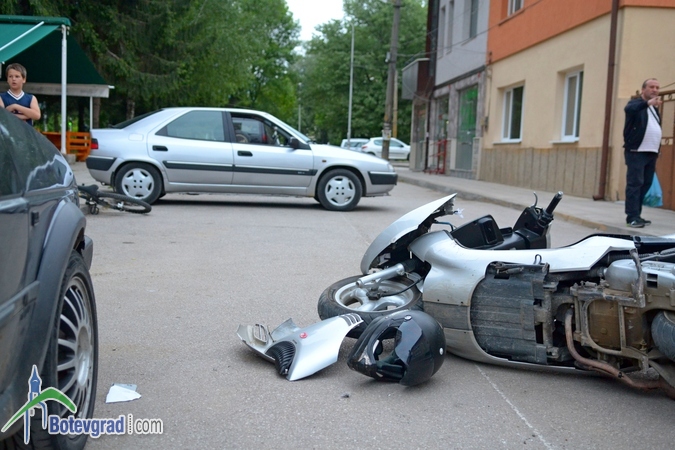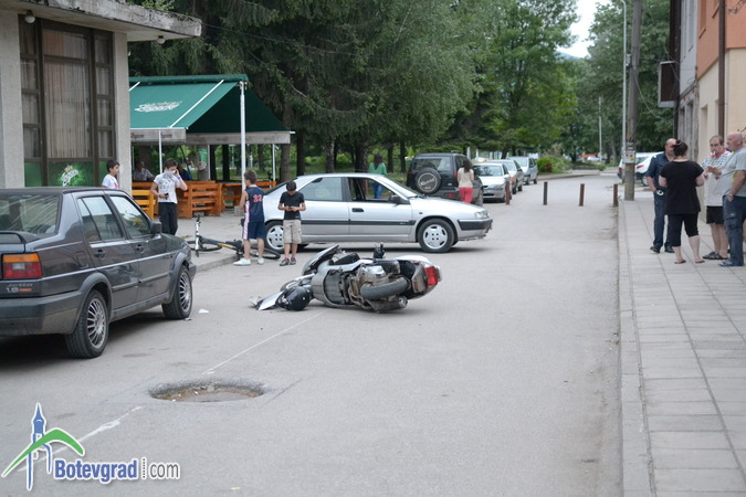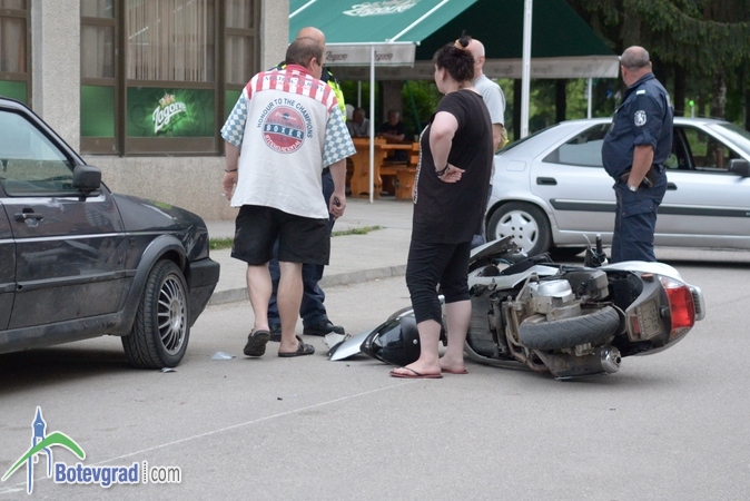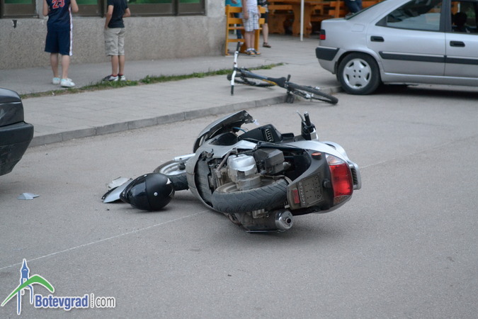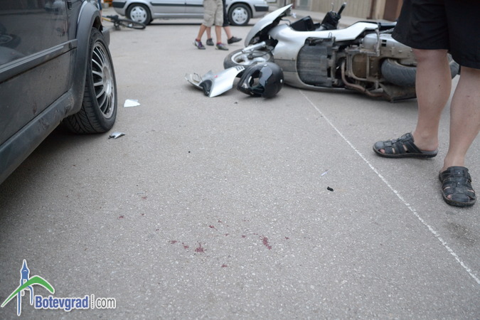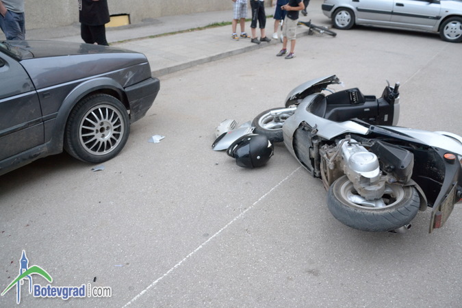 16- годишно момиче е пострадало при пътен инцидент със скутер в Ботевград. Снощи около 19.50 часа в полицията се получил сигнал за пътнотранспортно произшествие с пострадал. Униформените установили, че 16- годишна девойка от Ботевград, е загубила контрол върху управлявания от нея мотоциклет скутер „Кимко”, поради което се е блъснала в паркиран лек автомобил „Фолксваген Джета”. момичето е настанено в многопрофилната болница в Ботевград с комоцио, без опасност за живота, нейният 30- годишен спътник не е пострадал.