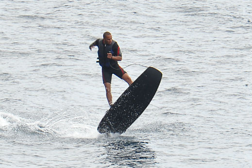 Луис Хамилтън и любимата му Никол Шерцингер се отдадоха на летни страсти. Пилотът от Формула 1 показа на гаджето си, че може да бъде добър не само на пистата, но и сред вълните.