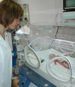 Момиченцето било поставено в специален бокс в интензивното отделение, откъдето било снабдявано с кислород .