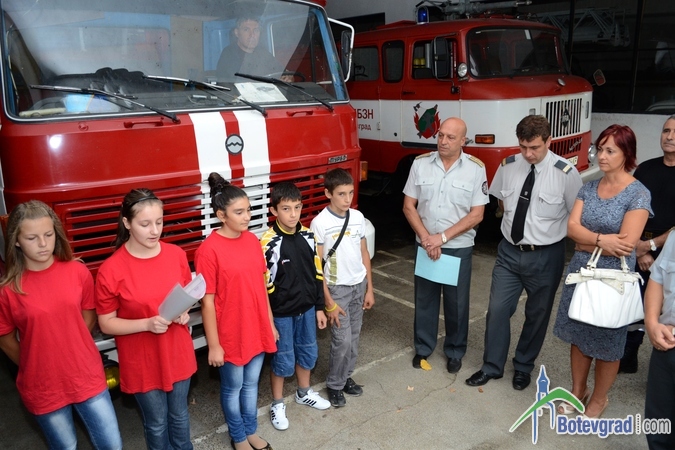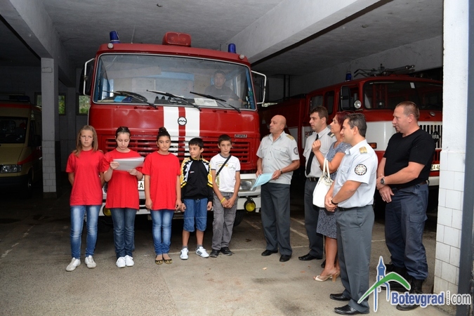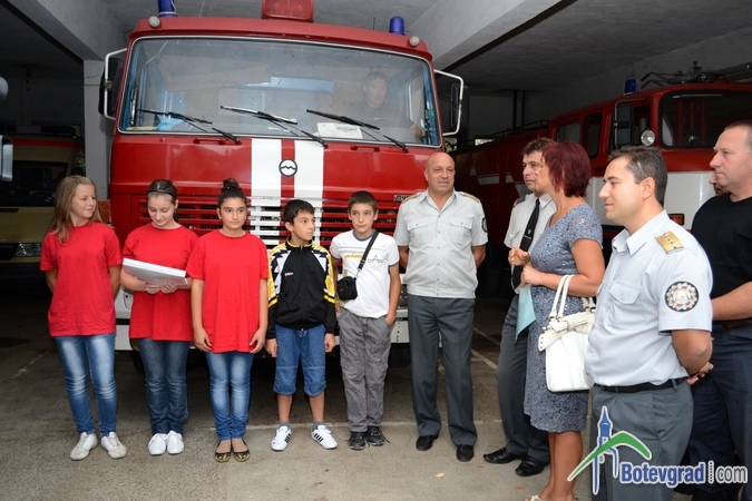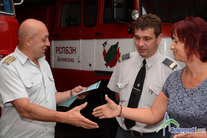 „Благодаря за приятната изненада с този поздрав. Вие сте бъдещите огнеборци в нашите отряди. Искам да благодаря и на вашата преподавателка г-жа Марчовска за инициативата", каза Васил Йошовски, началник на РCПБЗН- Ботевград.