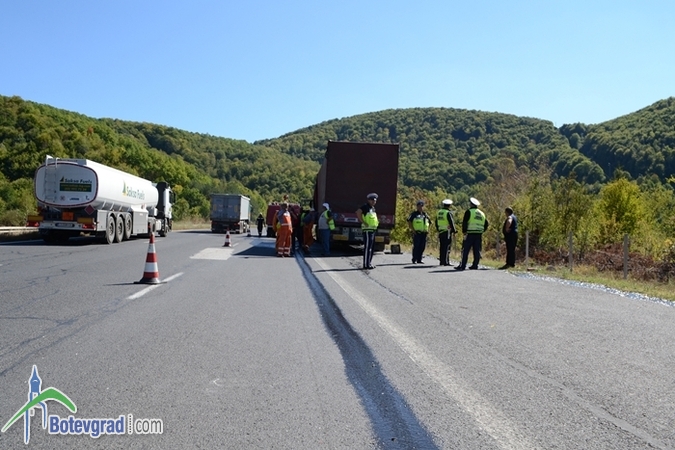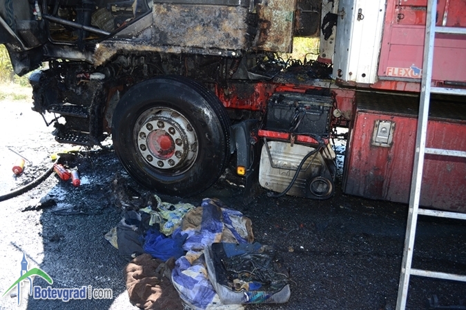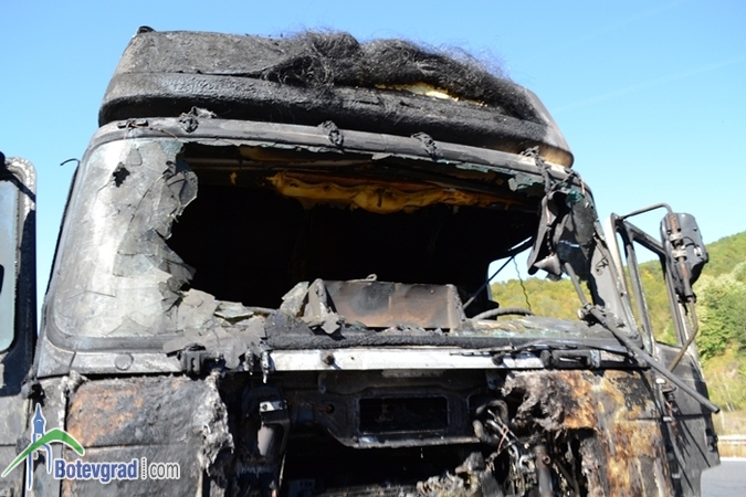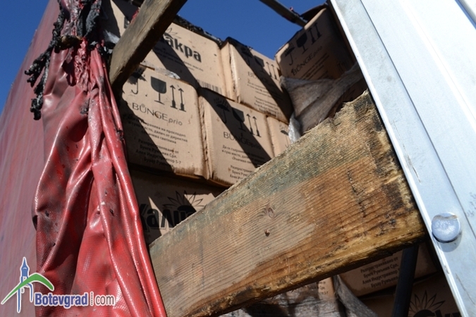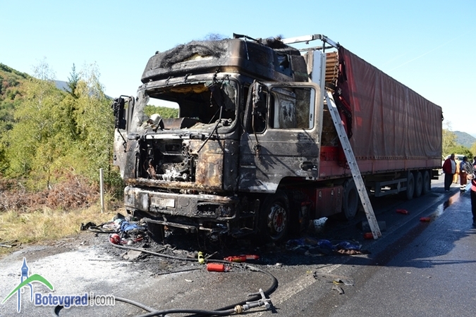 Изгоряла е кабината на ТИР-а, товарът - 21 тона олио, не е засегнат. Очаква се специален транспорт, който да изтегли камиона от пътното платно.