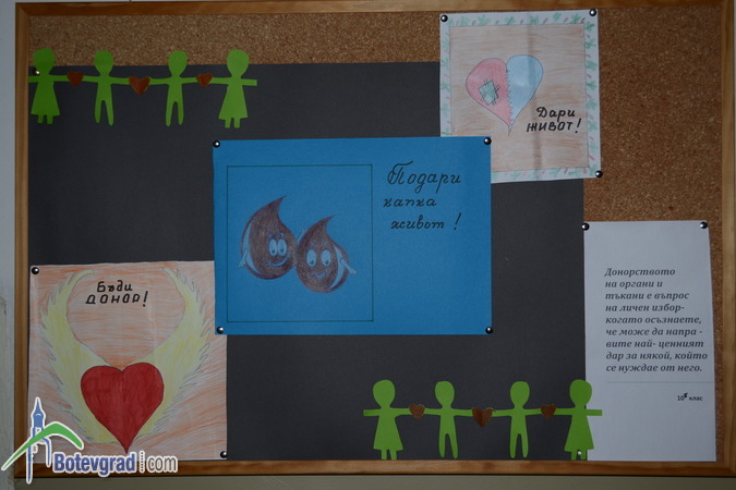 Училищният фелдшер Ели Табакова награди участниците в изложбата, посветена на донорството. Сред тях е деветокласникът Мартин. По време на своето пребиваване в Гърция той е силно впечатлен от случай на донорство, за който разказва чрез рисунката си. Върху нея е написал и името на детето, което живее с трасплантирано сърце на друго дете.