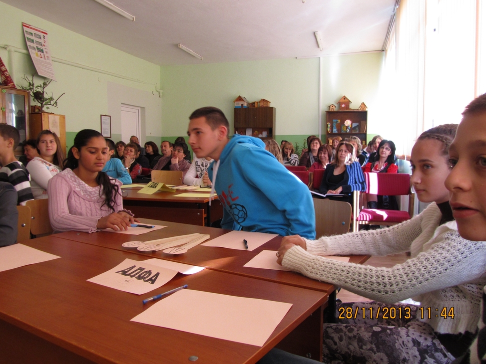 Учителката по математика Мария Денкинска организира урока под формата на състезание между седмокласниците, които бяха разпределени в три отбора: алфа, бета и гама. Учениците показаха, че математиката може да бъде лесна, приятна, забавна и интересна. На отборите бяха връчени грамоти за класиране в състезанието.