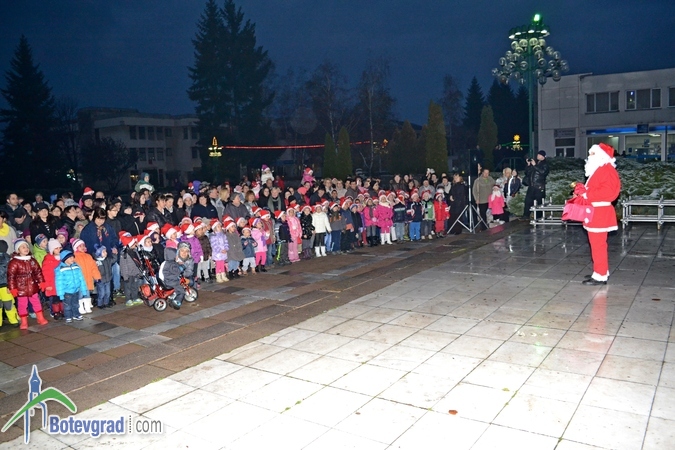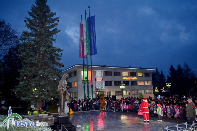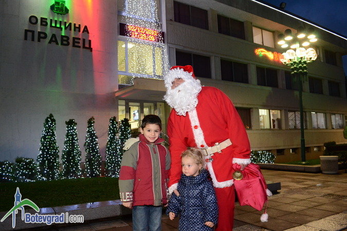 Тази вечер в присъствието на много деца и родители дядо Коледа запали светлините на Коледното дърво. По традиция в Правец украсяват 17-метровия бор, който расте на площада.