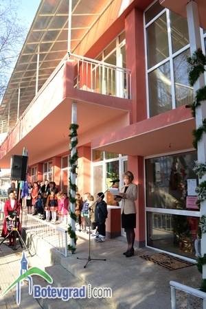 Лентата на обновената детска градина прерязаха кметът Георги Георгиев, бившата директорака Бисерка Иванова и Красимира Икова. Тържеството продължи в салона на детското заведение със специална програма, подготвена от малчуганите и техните учители.