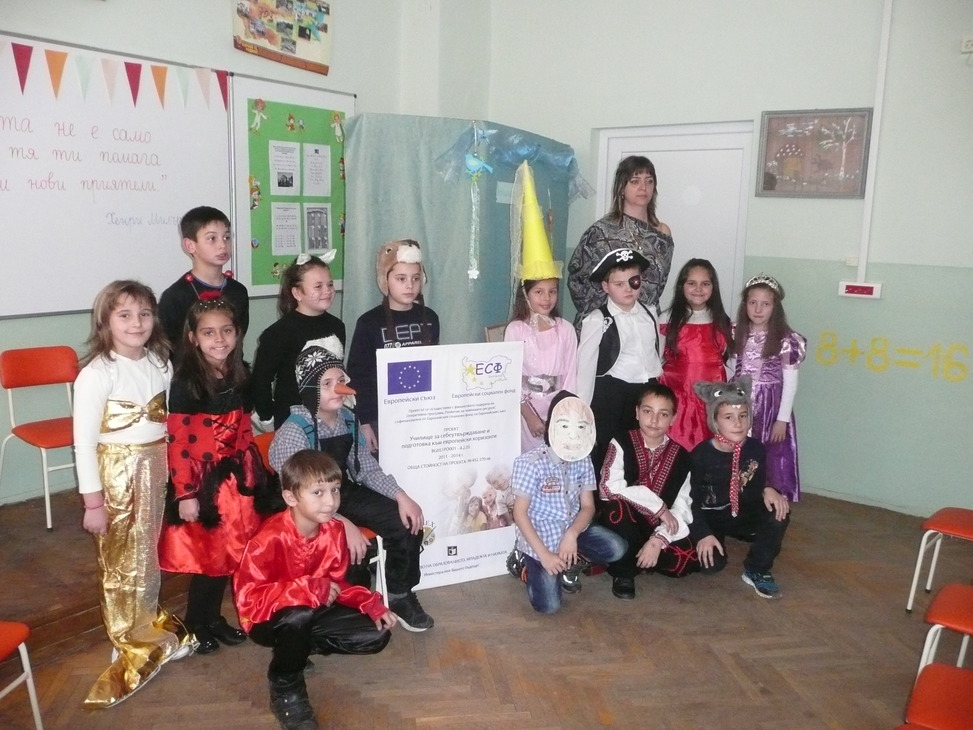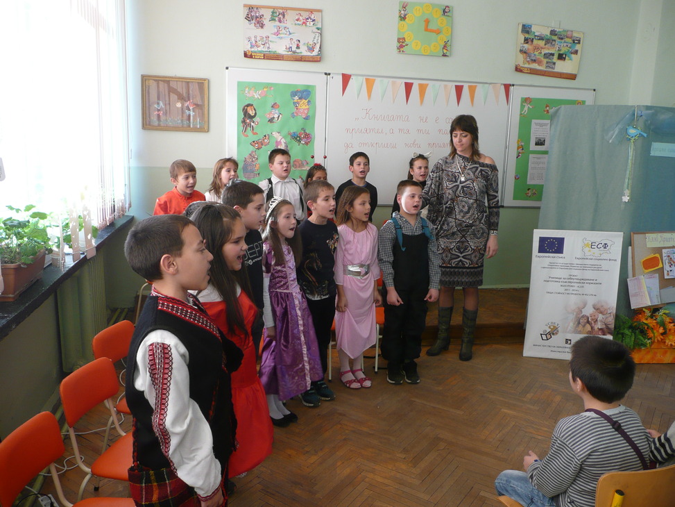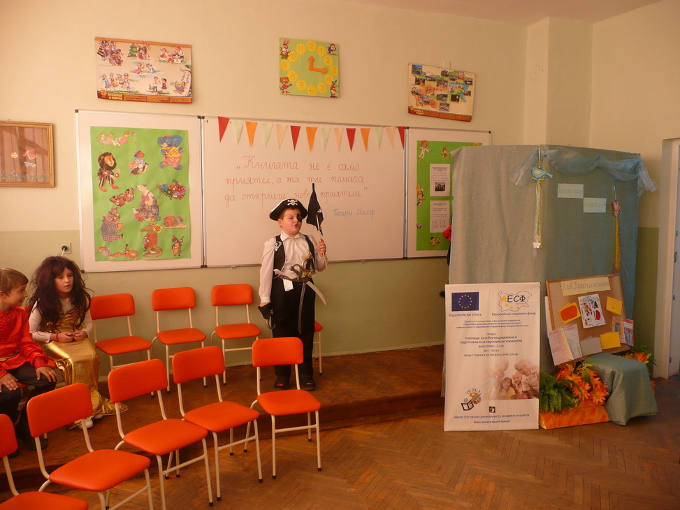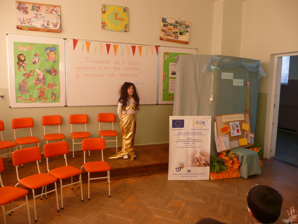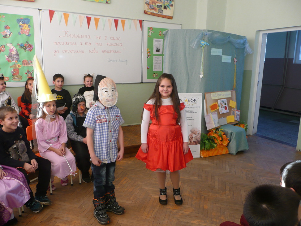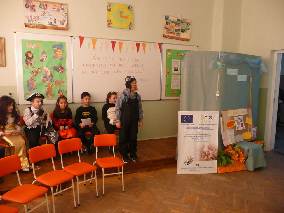 Участниците в клуба, облечени с подходящи сценични костюми, представиха кратка литературна програма, посветна на любимите им приказни герои. Знанията и артистичните способности на учениците бяха възнаградени от гостите с аплодисменти.