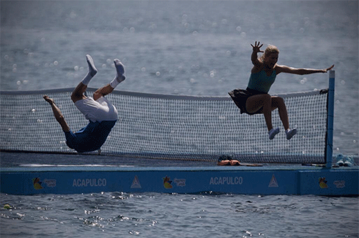 След като Гришо и Южени изиграха един сет на платформа, разположена в океана, скочиха във водите, за да се разхладят.