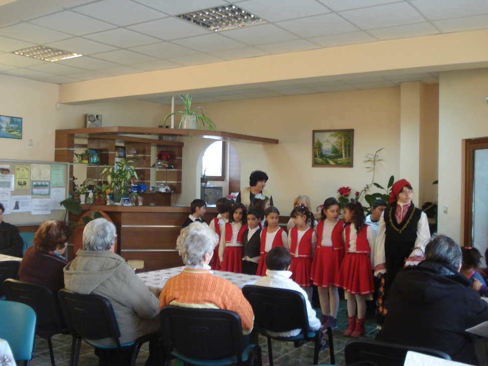 Участниците в клубове ”Славееви гласове” и „Театрално студио” поздравиха възрастните хора, учениците и учителите с литературно-музикална програма. Децата разказаха историята на празника с интересни презентации, изготвени в клуб ”Компютърна анимация, презентация, игри”.