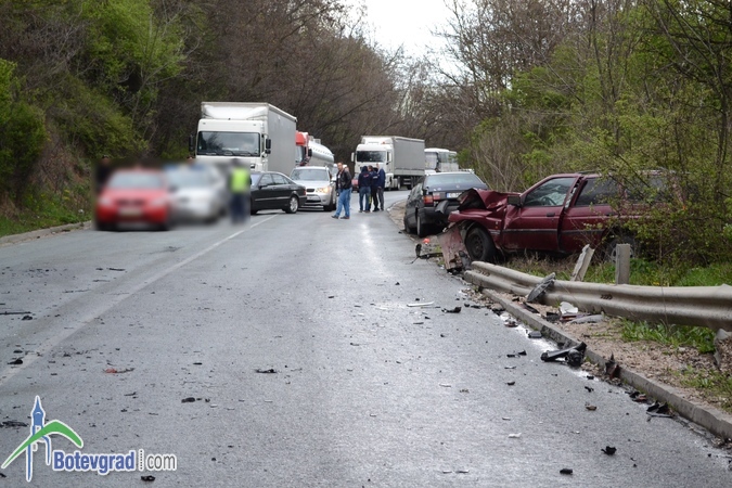 Лек автомобил "Форд Ескорт", движещ се в посока от Мездра към Ботевград, се е ударил челно в ТИР. В колата са пътували трима души, които са пострадали и с линейки са откарани в Спешна помощ в Ботевград. 10-15 минути след катастрофата образувалата се колона от автомобили тръгнала да заобикаля катастрофиралия ТИР, който останал на пътното платно. В този момент обаче друга лека кола – "Фолксваген Пасат", със софийска регистрация, идващ откъм Мездра, също се блъснала челно в ТИР, който в този момент заобикалял катастрофиралия камион. За щастие при втората катастрофа няма пострадали. В момента на мястото има полиция. И в двете посоки на главниия път Е-79 са се образували километрични опашки.