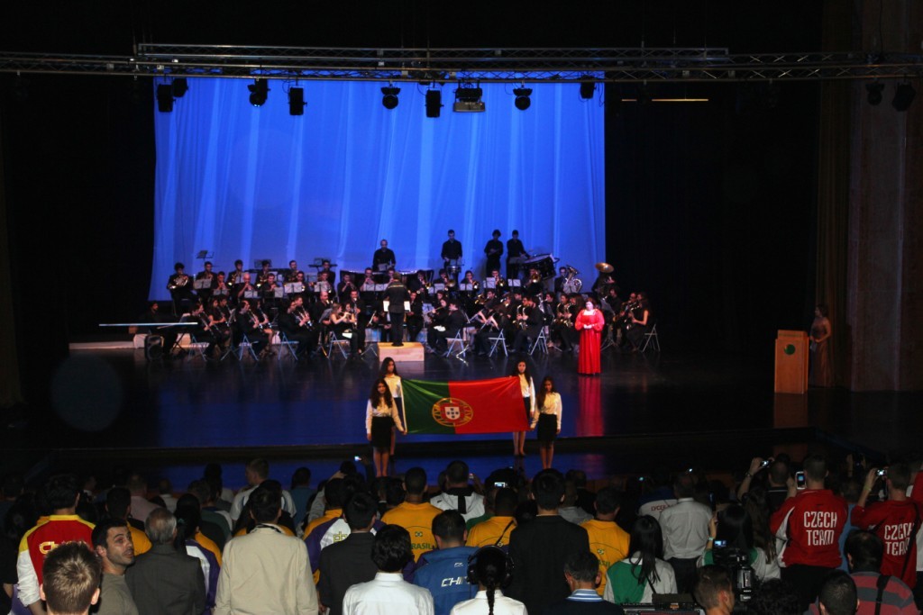 На 10 април се състоя Церемонията по откриването на Световното първенство в зала Europarque в Санта Мария да Фейра. Церемонията събра на едно място над 1200 души от цял свят. Организацията определено бе на ниво. С приветствия, за добре дошли към всички участници в игрите, треньорите, съдиите и водачите на делегациите на всяка една страна, се обърнаха: Joao Grancho – Държавен секретар на образованието и младежта, Norbert Kever – делегат на Международната федерация за ученически спорт (ISF) и Cristina Tenreiro – съветник по въпросите на образованието, културата, младежта и спорта в община Санта Мария да Фейра. Всички те пожелаха на участниците успех в игрите, да покажат на какво са способни, като разбира се на първо място трябва да поставят правилата на честната игра, за което бе положено и клетва.