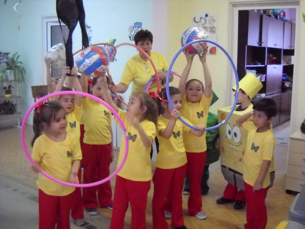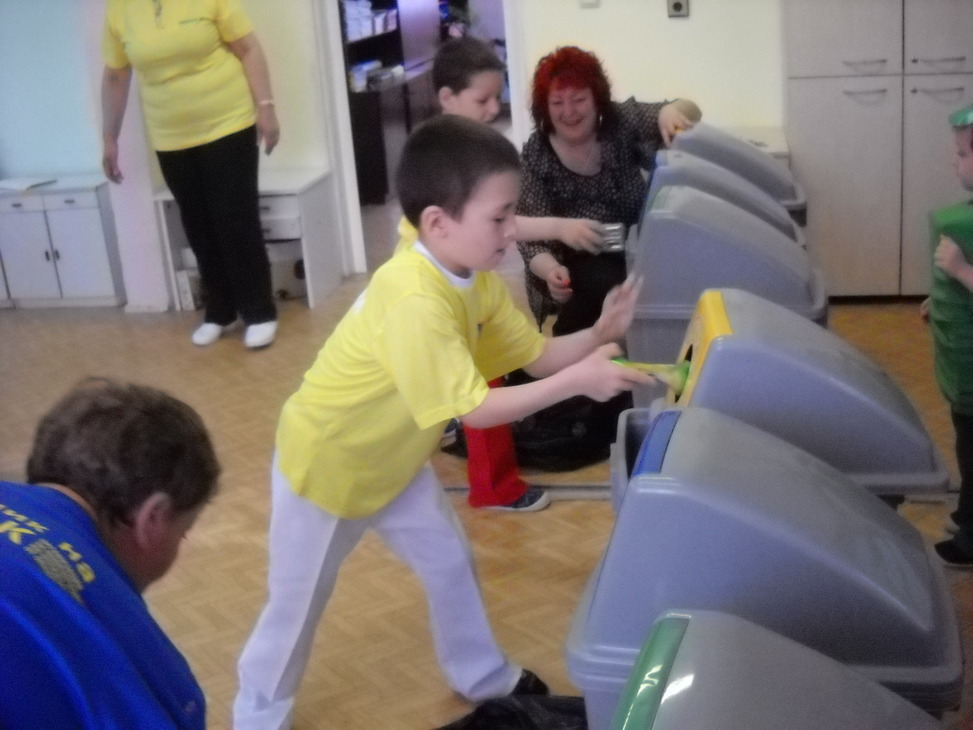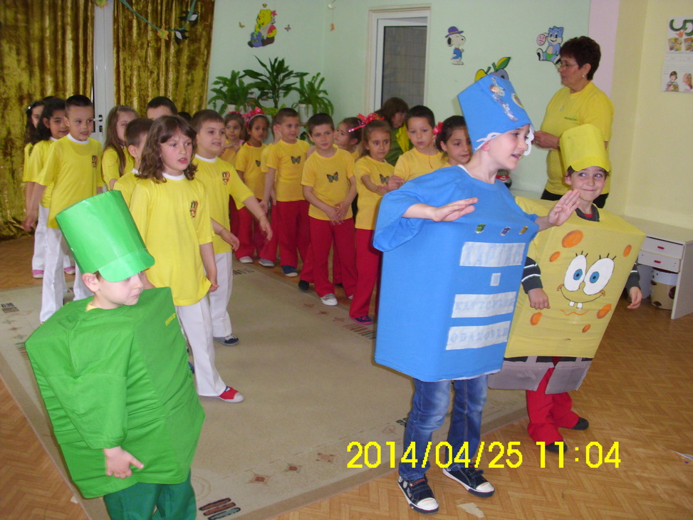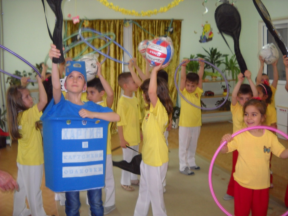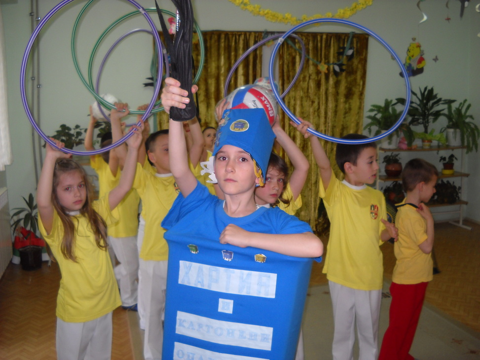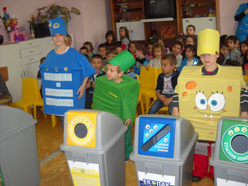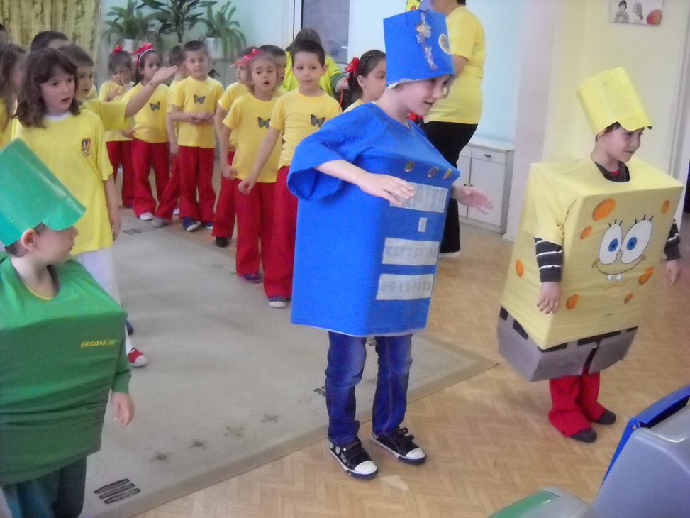 Отборите бяха два - отбор "Пеперудка" и отбор "Калинка" - между двете предучилищни групи. Децата се включиха в игрите с голям ентусиазъм и желание, и проявиха бързина, прецизност и точност. Наред с истинските контейнери, в които се отделяха отпадъците по предназначение, имаше и други „истински син, жълт и зелен контейнер”, които пяха, танцуваха и се веселяха заедно с всички деца- състезатели и публика.