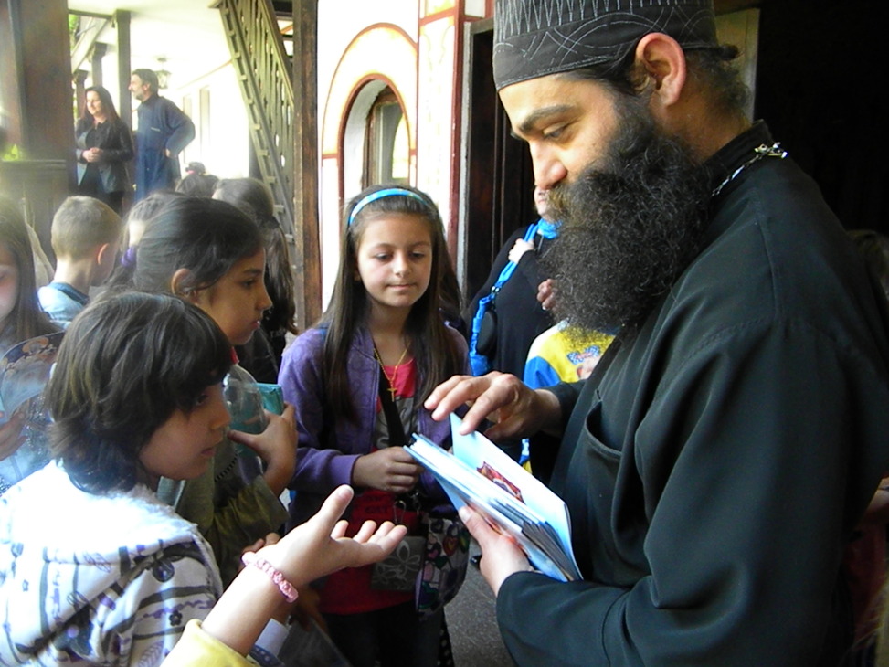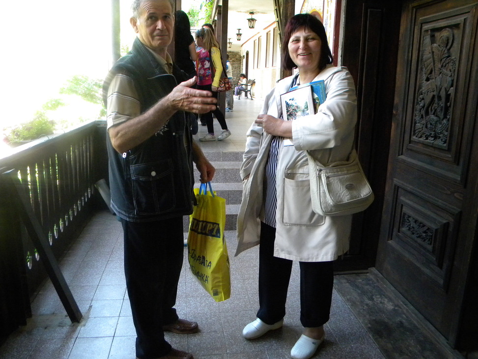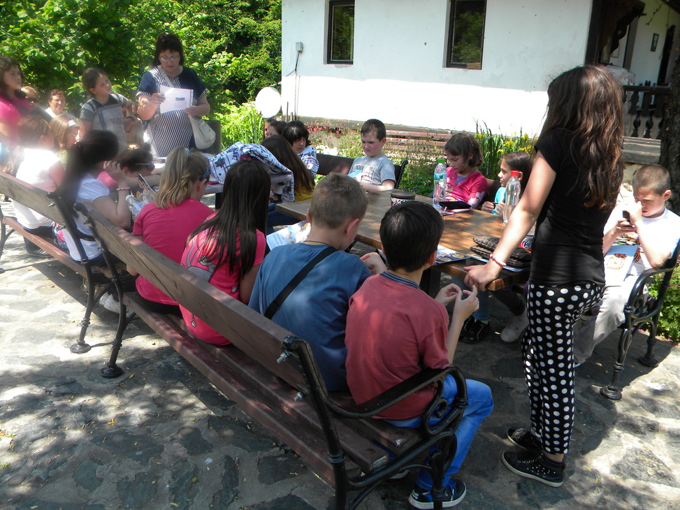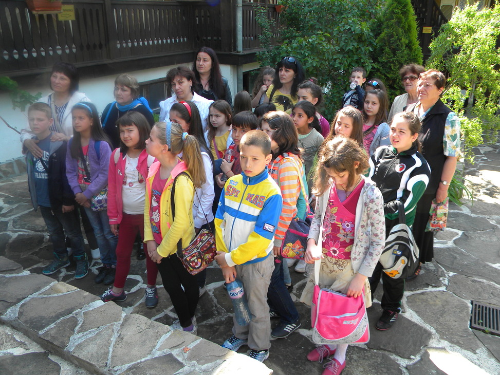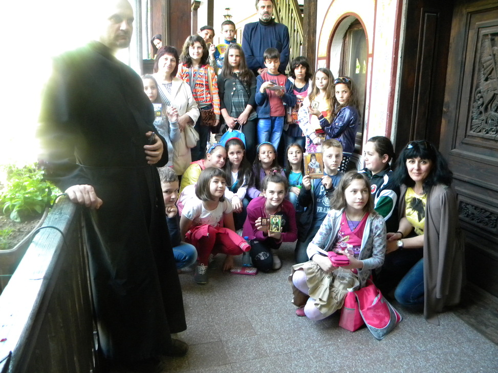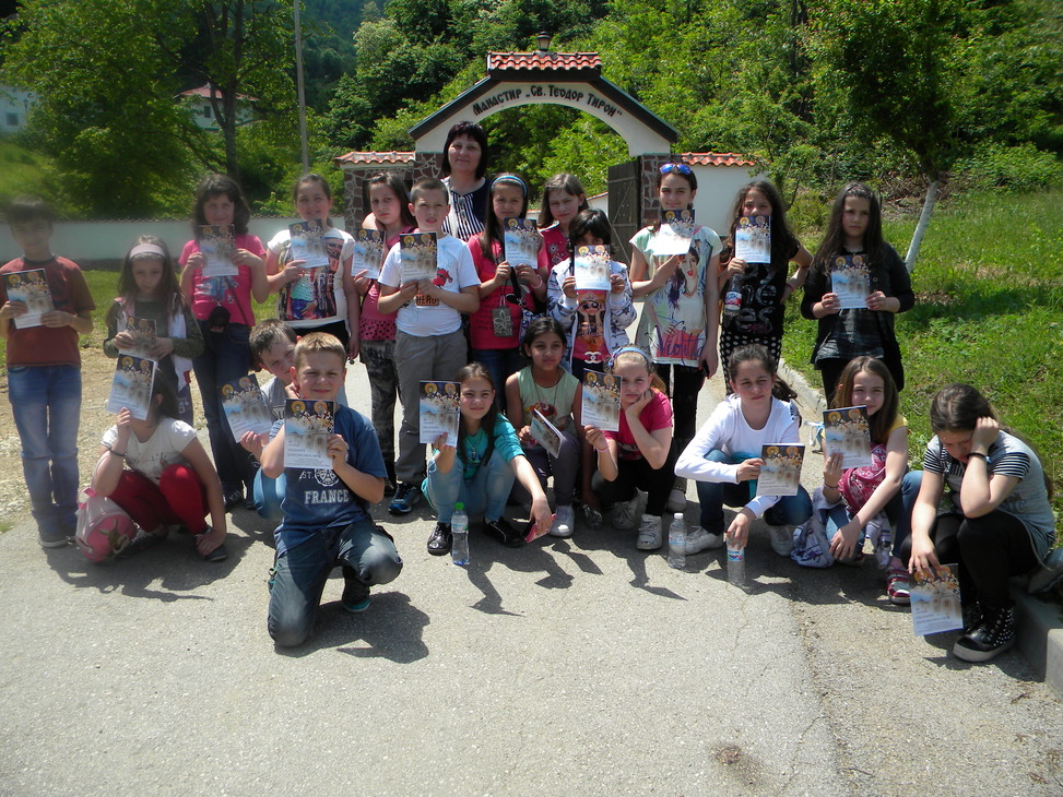 Йеромонах Михаил подари на децата по една книжка „За храма, иконите и църковната свещ” и след снимките за спомен, групата прекара обедната почивка в съседното село Калугерово.