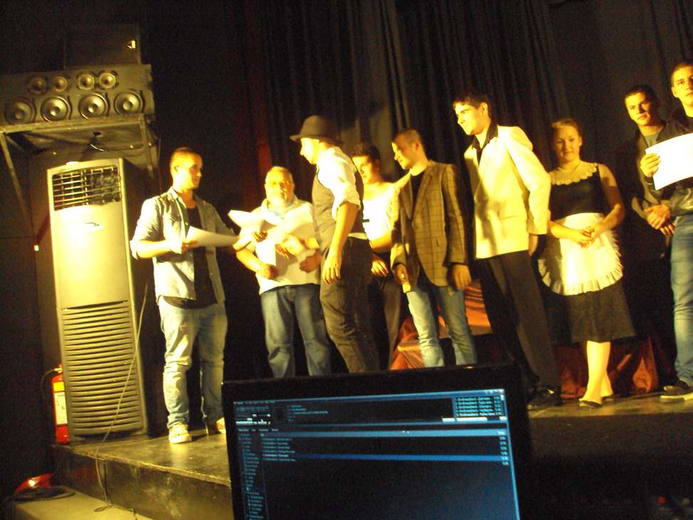 С този спектакъл младите етрополски артисти взеха участие във Втория театрално-танцов фестивал "Талантино", който се проведе от 14 до 18 юни в Благоевград. След достойно представяне, заедно с още 13 състава от страната, компетентно жури от артистите Веселин Калановски и Николай Станоев отличи и нашето момиче Петя Димитрова от ІХ-в клас. Тя получи награда за женска роля.