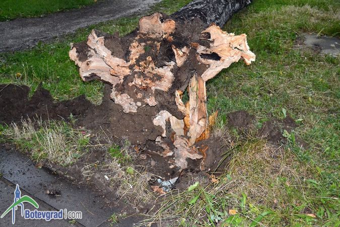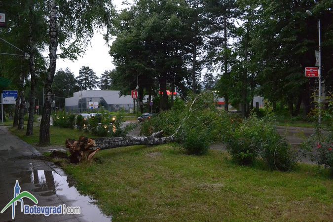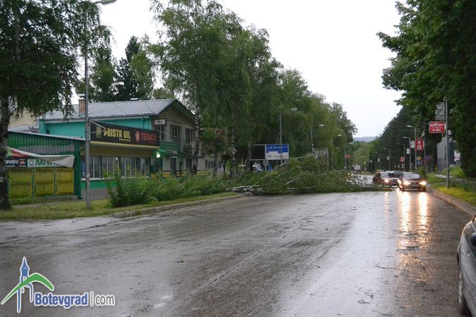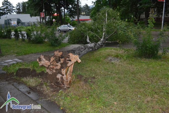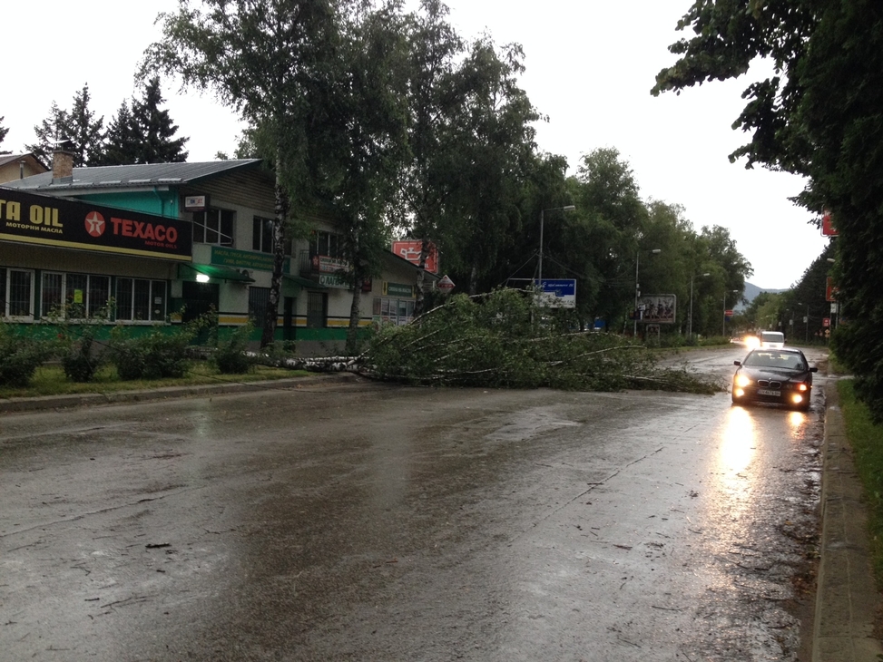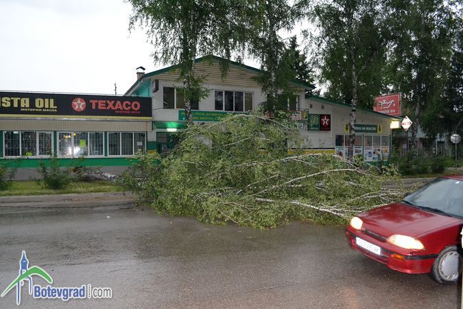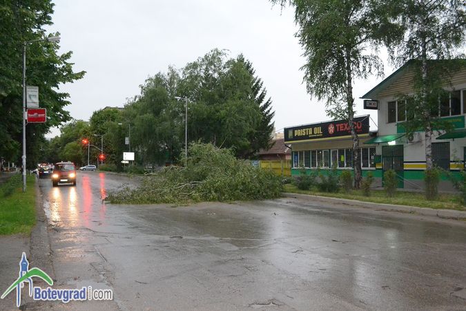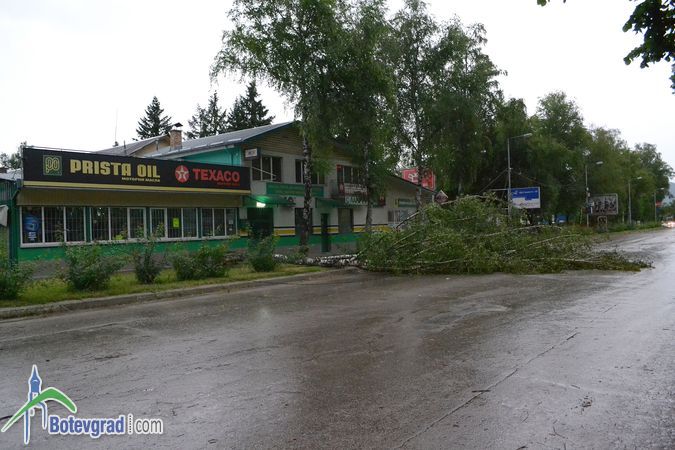 Бурята повали дърво пред търговския обект на „Приста ойл” в Ботевград. Дървото е на пътя и затруднява движението в участъка.
