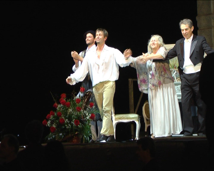 Равностойни като партньори на сцената, отдадени и вдъхновени Калин Врачански и Асен Блатечки разказаха една история за сблъсъка на обикновения човек /макар и работлив и талантлив/ с Гения. Според трактовката на Бина Харалампиева това е сблъсък на човека с божественото, със самия Бог.