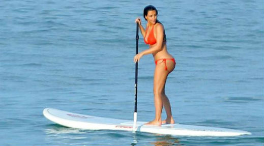Един полъх на вятъра и Кардашиян ще цамбурне във водата. Дори и морските течения да не са толкова силни, че да съборят човек, огромния задник на жената на Кание Уест със сигурност повече пречи, отколкото да помага.
